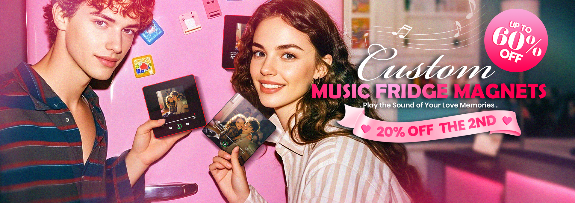 CustomFridgeBeats Music Fridge Magnet Personalized Photo Album Fridge Magnet Music Wall Photo Sticker Music Fridge Magnet Can Play Songs Gift for Lovers -