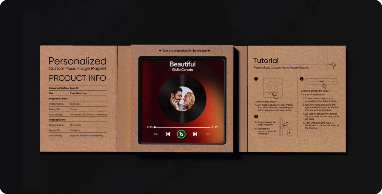 CustomFridgeBeats New 4.0 Upgrade Custom Music Fridge Magnet Gift for Couple Colorful Frame Album Fridge Magnet Can Play Songs